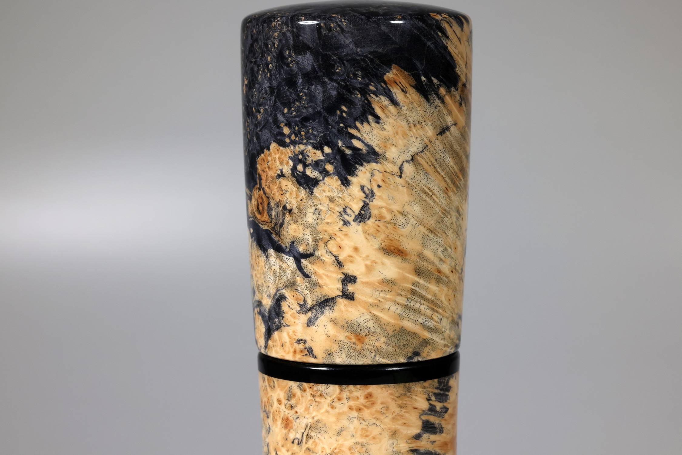 Holz: Eschenahorn Maser, schwarz stabilisiert, Zierring aus Ebenholz