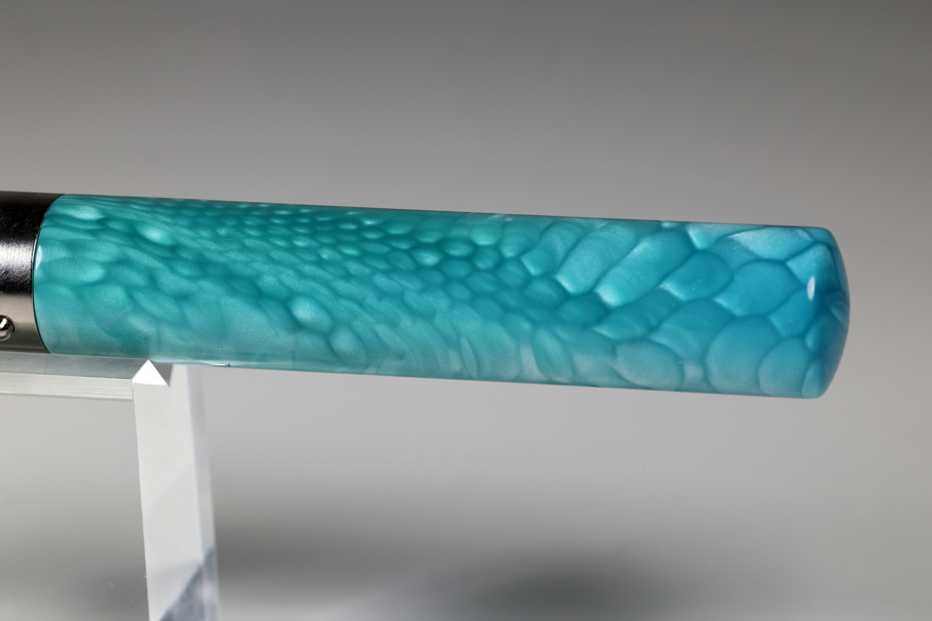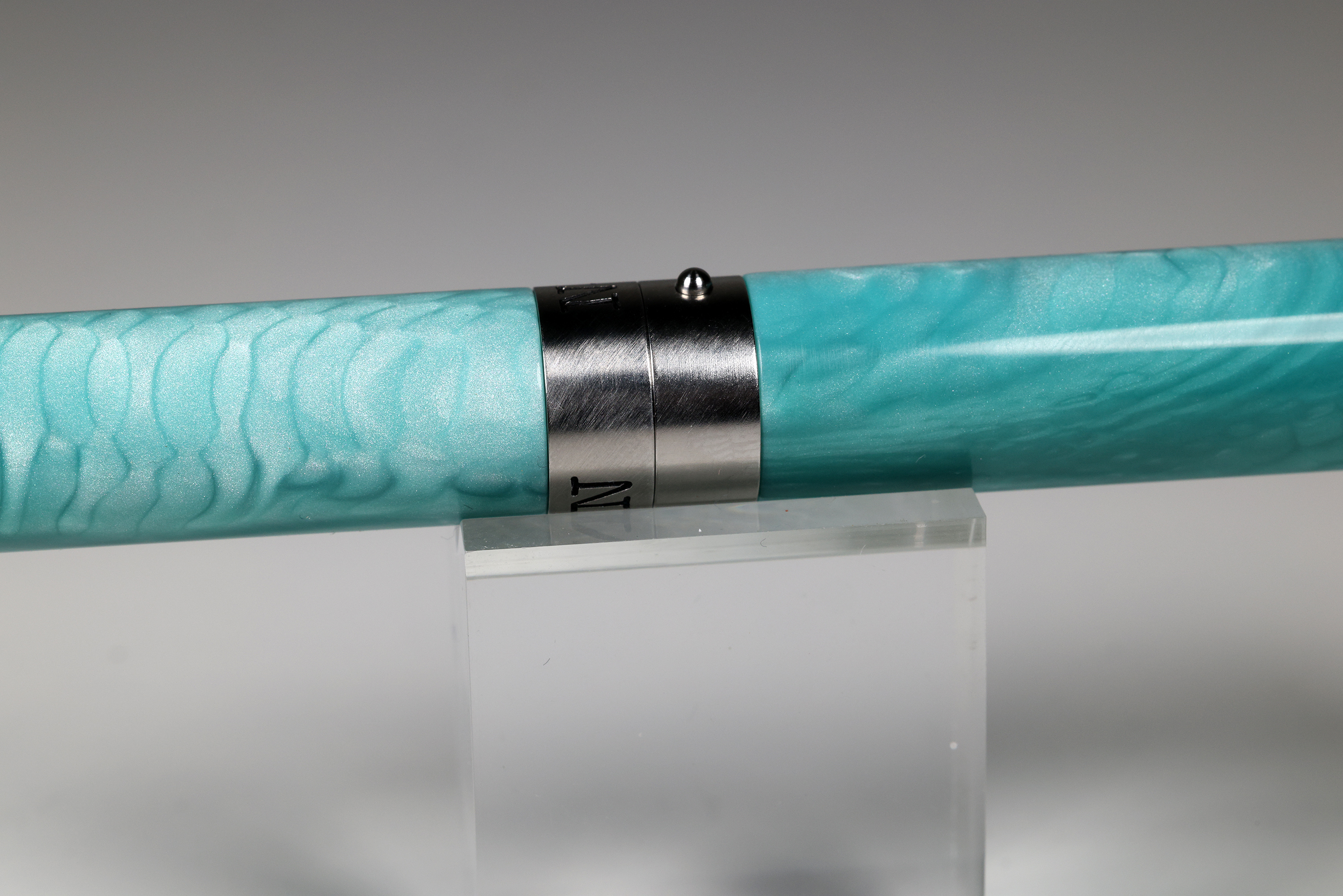 Ausgestattet ist der EXPLORER mit einem äusserst schlanken aber sehr effektivem Roll-Stop-Pin. Dieser sorgt dafür, das der EXPLORER genau da bleibt wo er hingehört. Auf Ihrem Schreibtisch. Auch im aufgeschraubten Zustand. Auf einen Clip wurde bewusst verzichtet. Gefertigt wurde der Füller als sogenannter Closed-End.